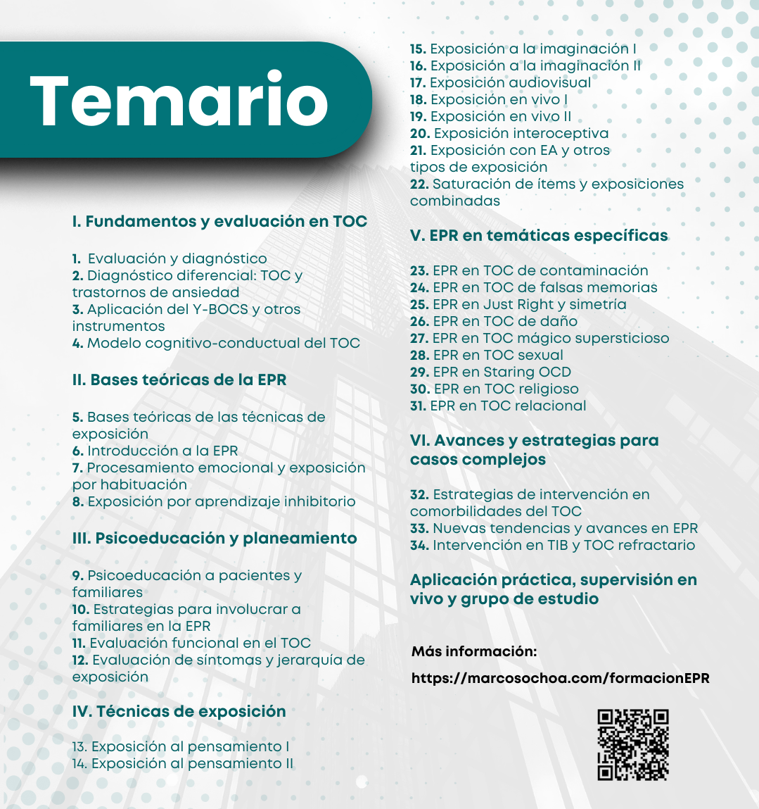Especializado en Exposición y Prevención de Respuesta (EPR), Exposición Prolongada (EP) y Terapias de Exposición.